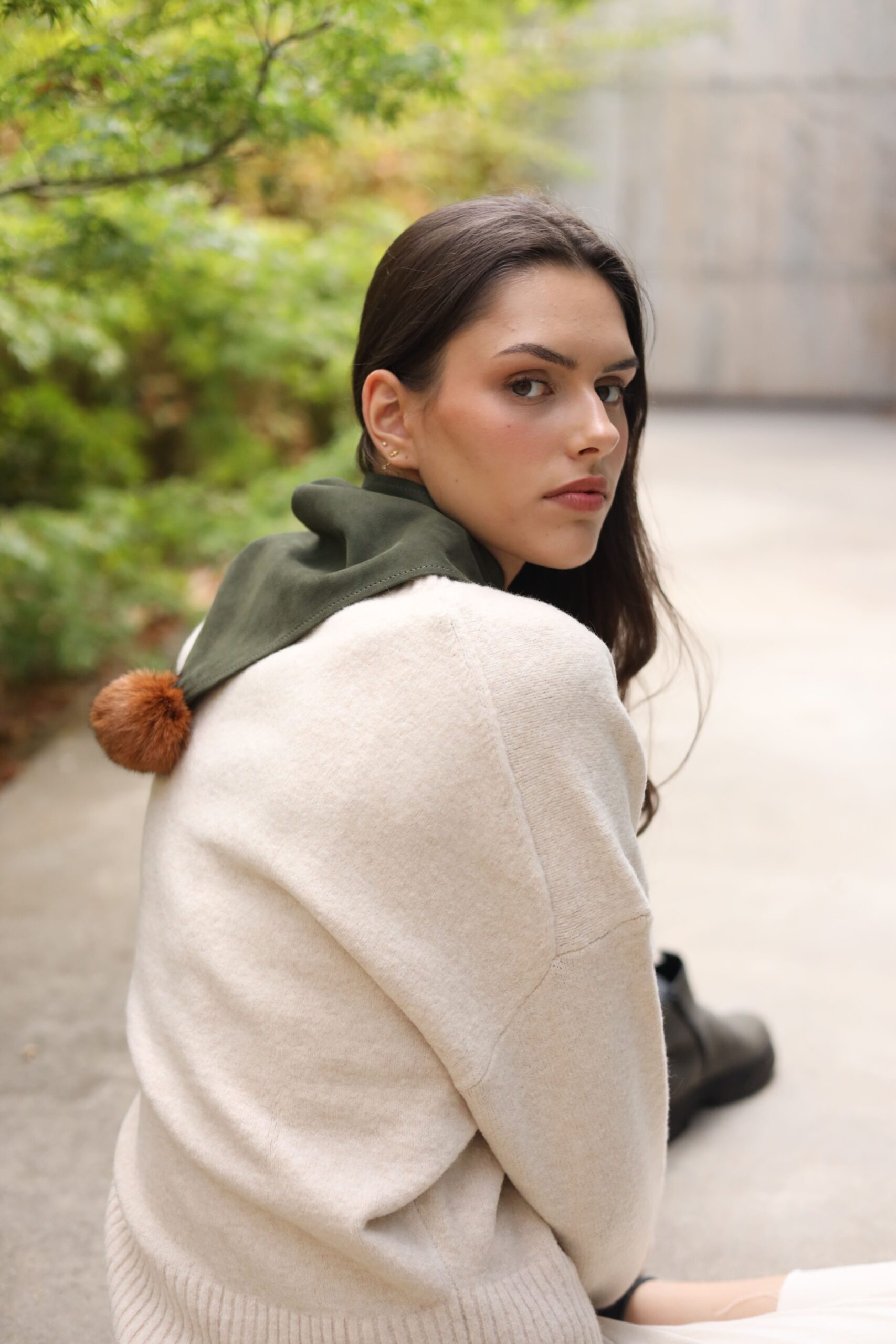 Las bolitas son de piel de zorro y puedes elegir tu bandana a tono o con la bolita en otro color.